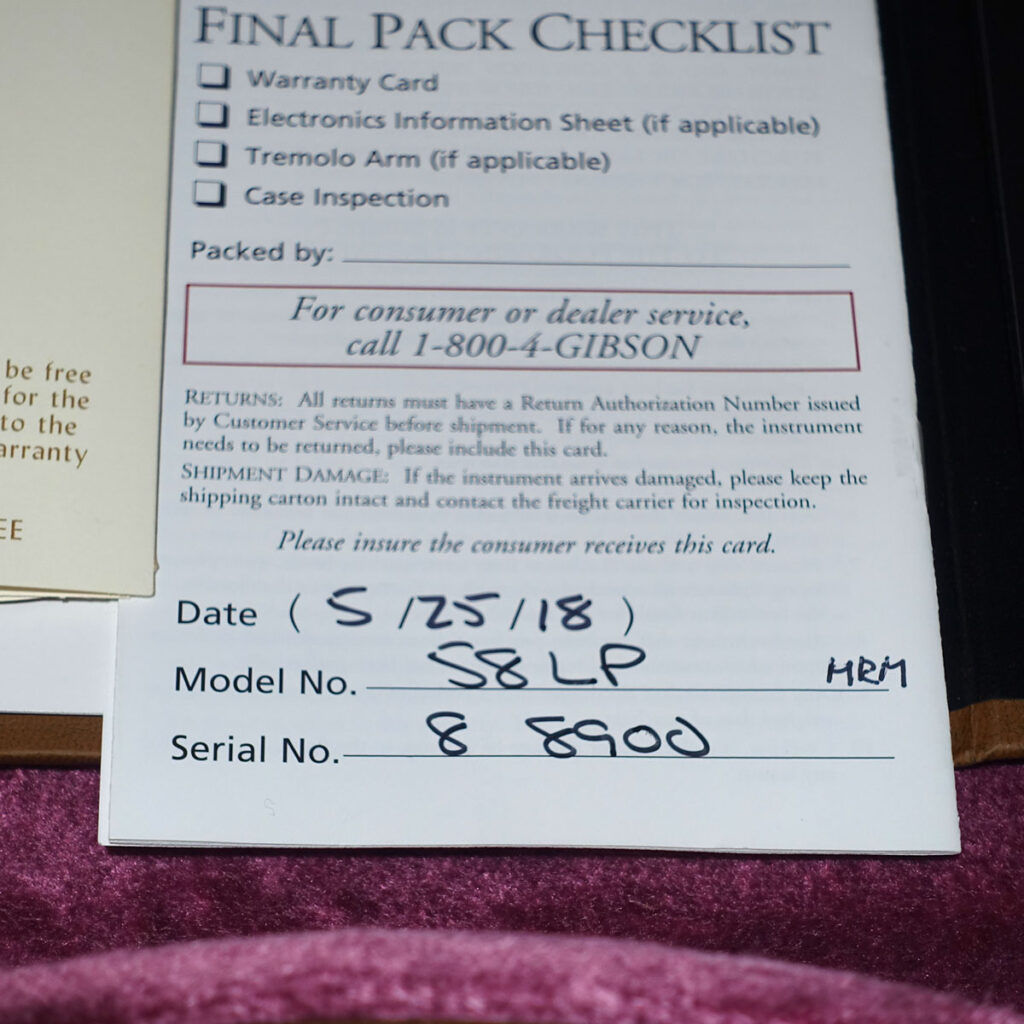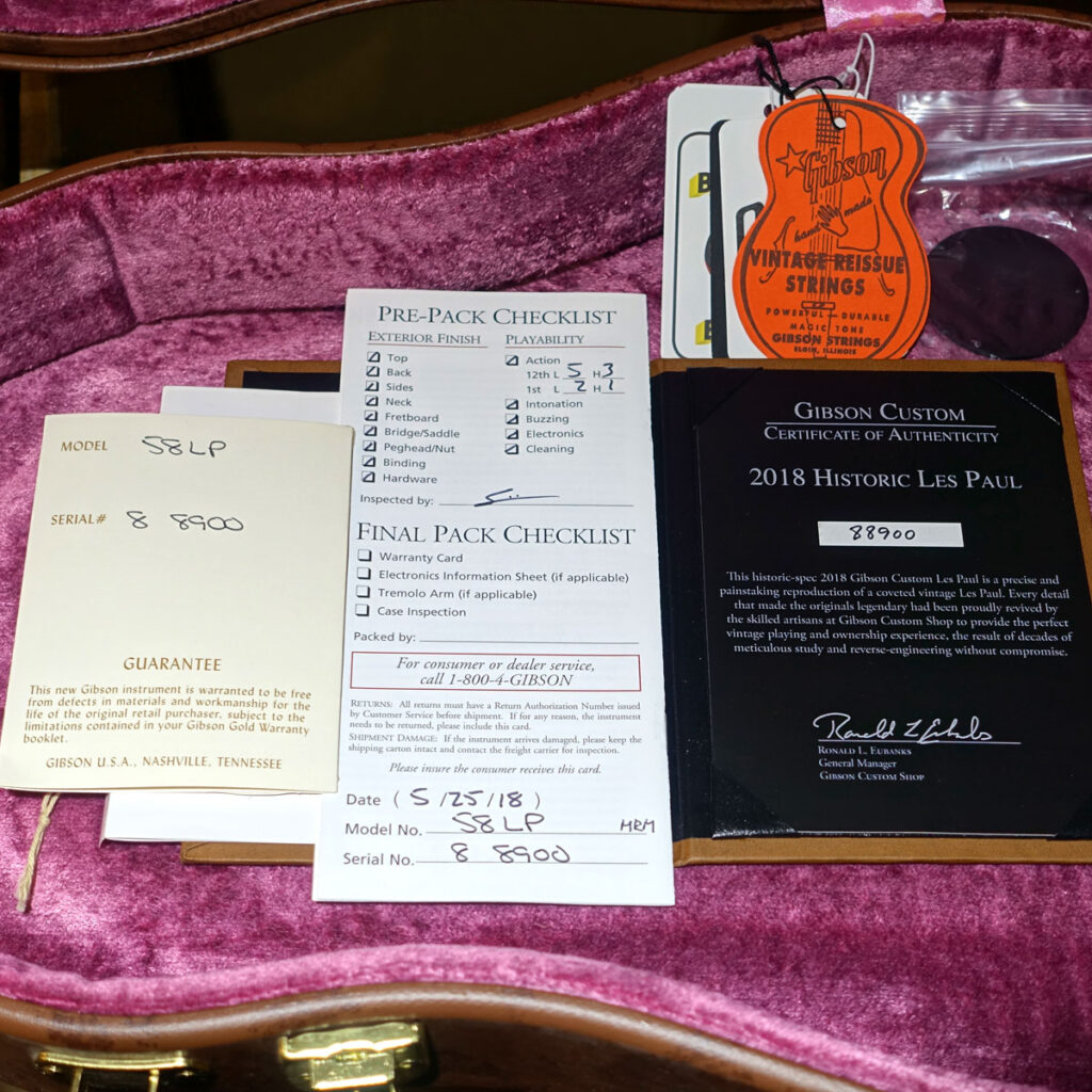 トップにハードロックメイプルを採用した1958レスポールスタンダードのVOS仕上げ。