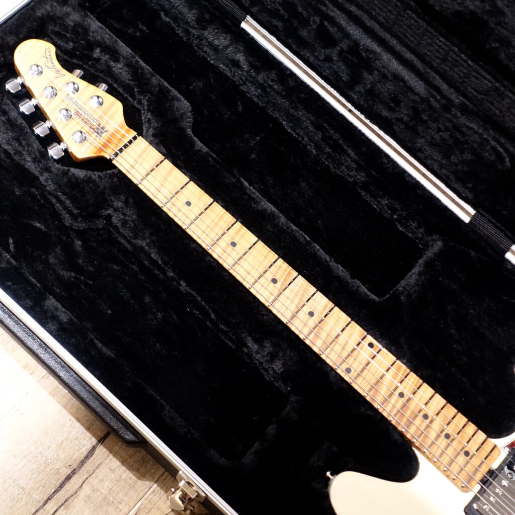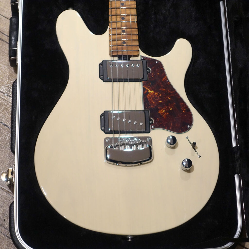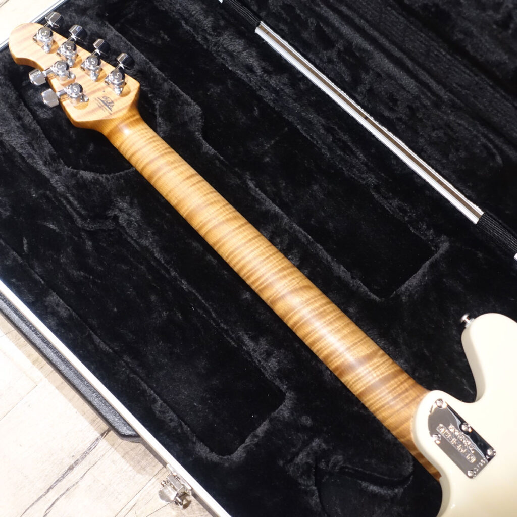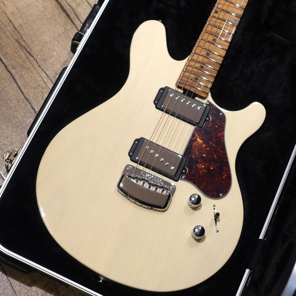ボディはアッシュ。トランス・バターミルク・カラーの塗装から薄っすらと木目が透けて見えます。