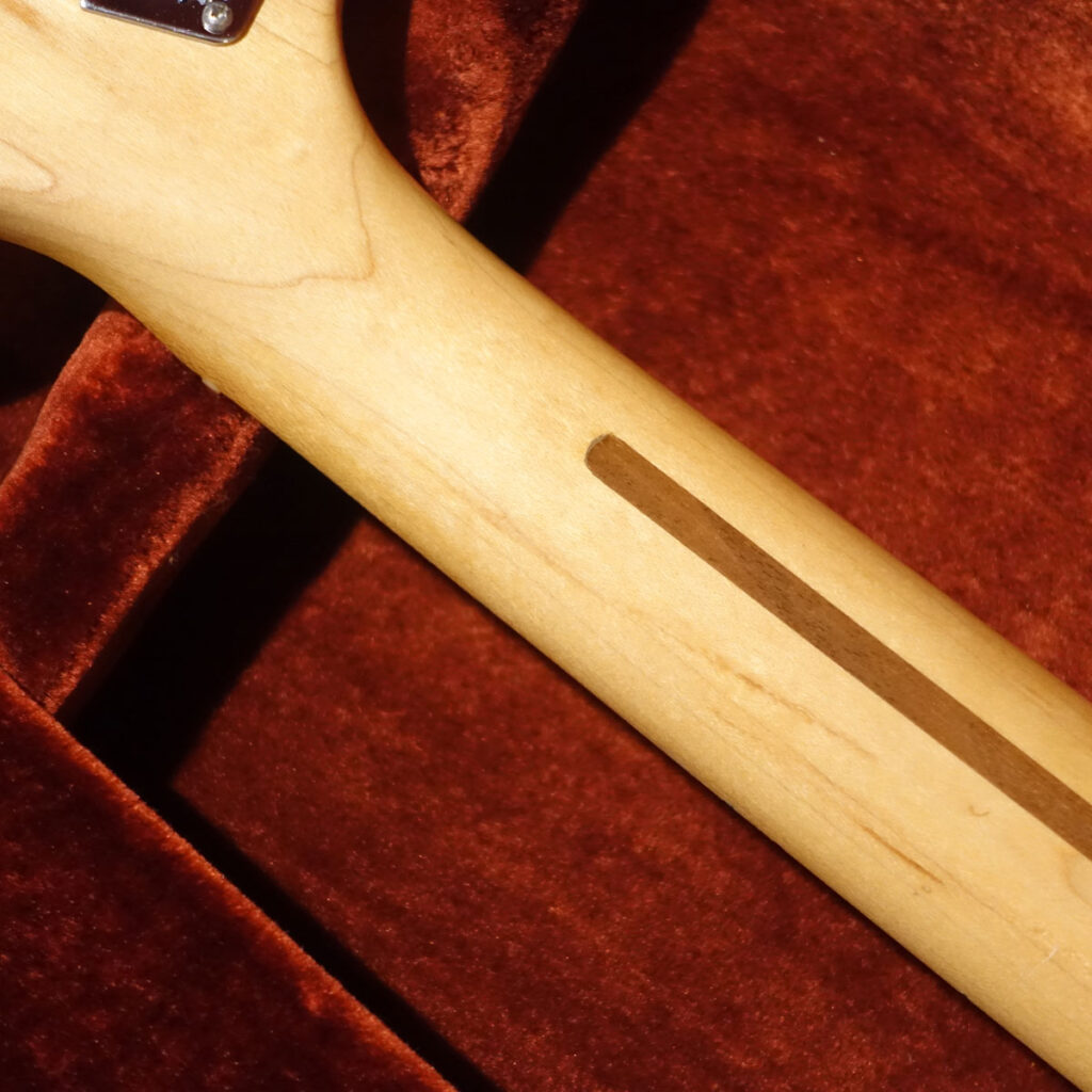 ネックは1ピースメイプル。指板にて塗装剥がれが多数見られます。