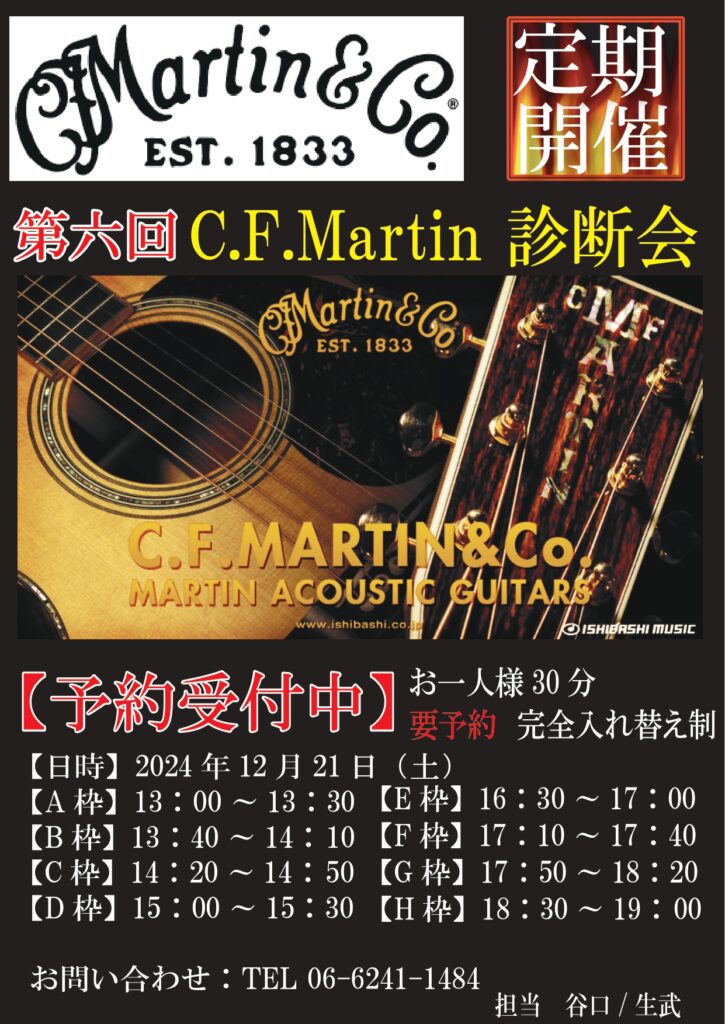 / イベント情報 / By 心斎橋店 / 2024年12月4日 / アコギ 第6回目となるMartin診断会を開催いたします! Martin専属リペアマンが貴方様の愛機を点検、調整いたします。しかも”完全無料”です!! […]