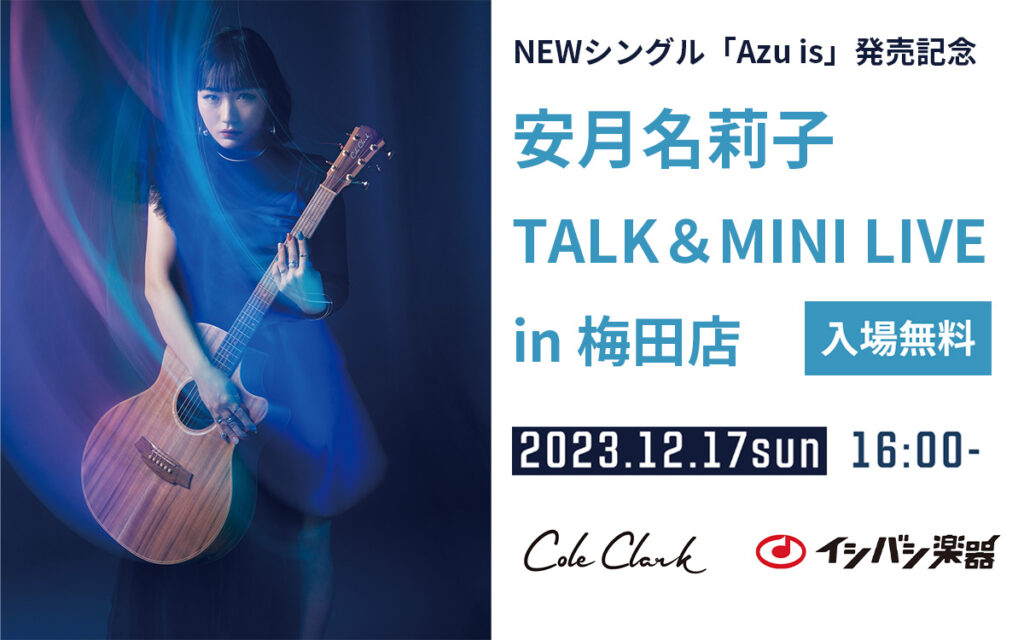 日程 2023年12月17日(日) 16:00 START 入場無料 会場 イシバシ楽器梅田店・特設イベントスペース 2023年11月8日にNEWシングル「Azu is」を発売した、Cole Clark ユーザ