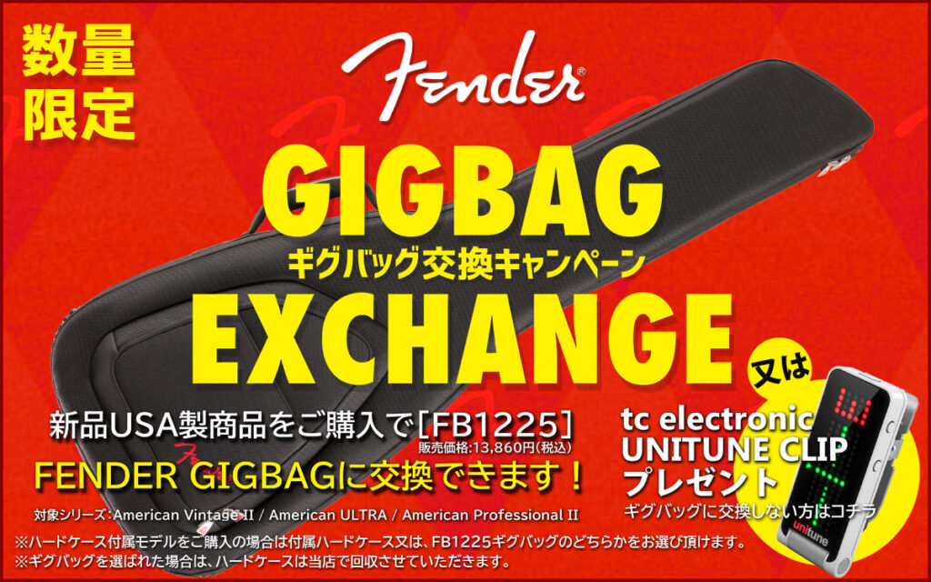渋谷店ベースフロアからキャンペーンのご案内!! ずばりFender USA製品ご購入で、付属のハードケースをギグバッグに交換しちゃいます!! ■キャンペーン内容 付属のハードケースをFender FB1225に交換 もし […]